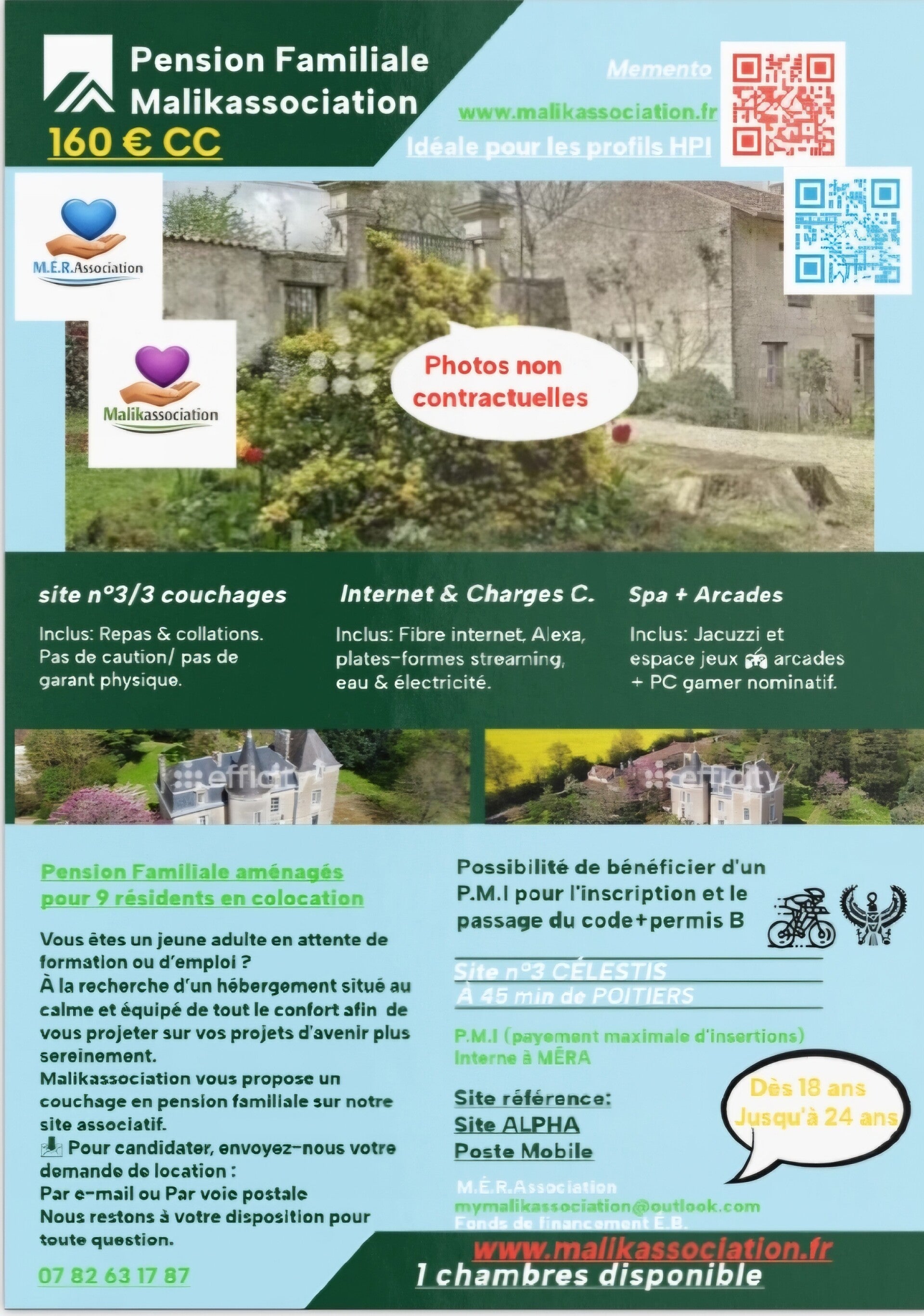 Malikassociation, grâce au Financement par dons d'odysséExpress, propose sous statut de pension familiale un hébergement accessible aux jeunes pré-actifs ou en attente d’un cursus d'études supérieures.